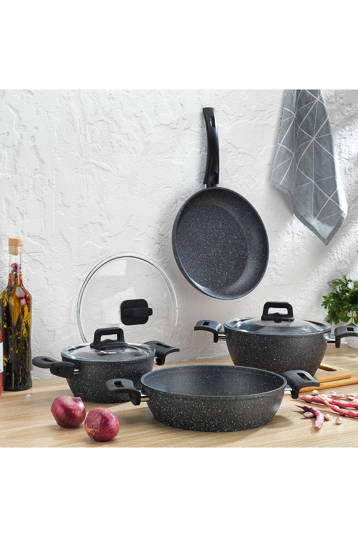 New Stark Granit Tencere Seti-7 Parça-Antrasit